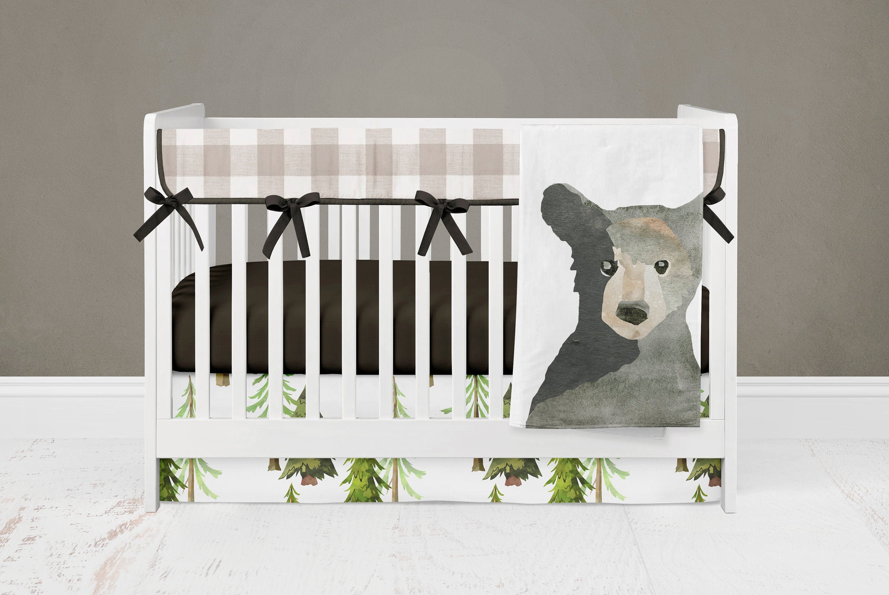 Bumpers in the crib teddy bear on the cloud. This baby boy bedding set features a stunning bear and mountain watercolor print triangle tree print and solid slate blue fabric. Bear Crib Bedding Sets Custom Baby Boy Boutique.