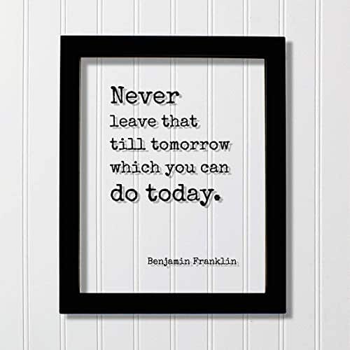 Said to emphasize that you should not delay doing something if you can do it immediately 2. Benjamin Franklin - Never leave that till tomorrow which. I quote from the paragraph which reads.
