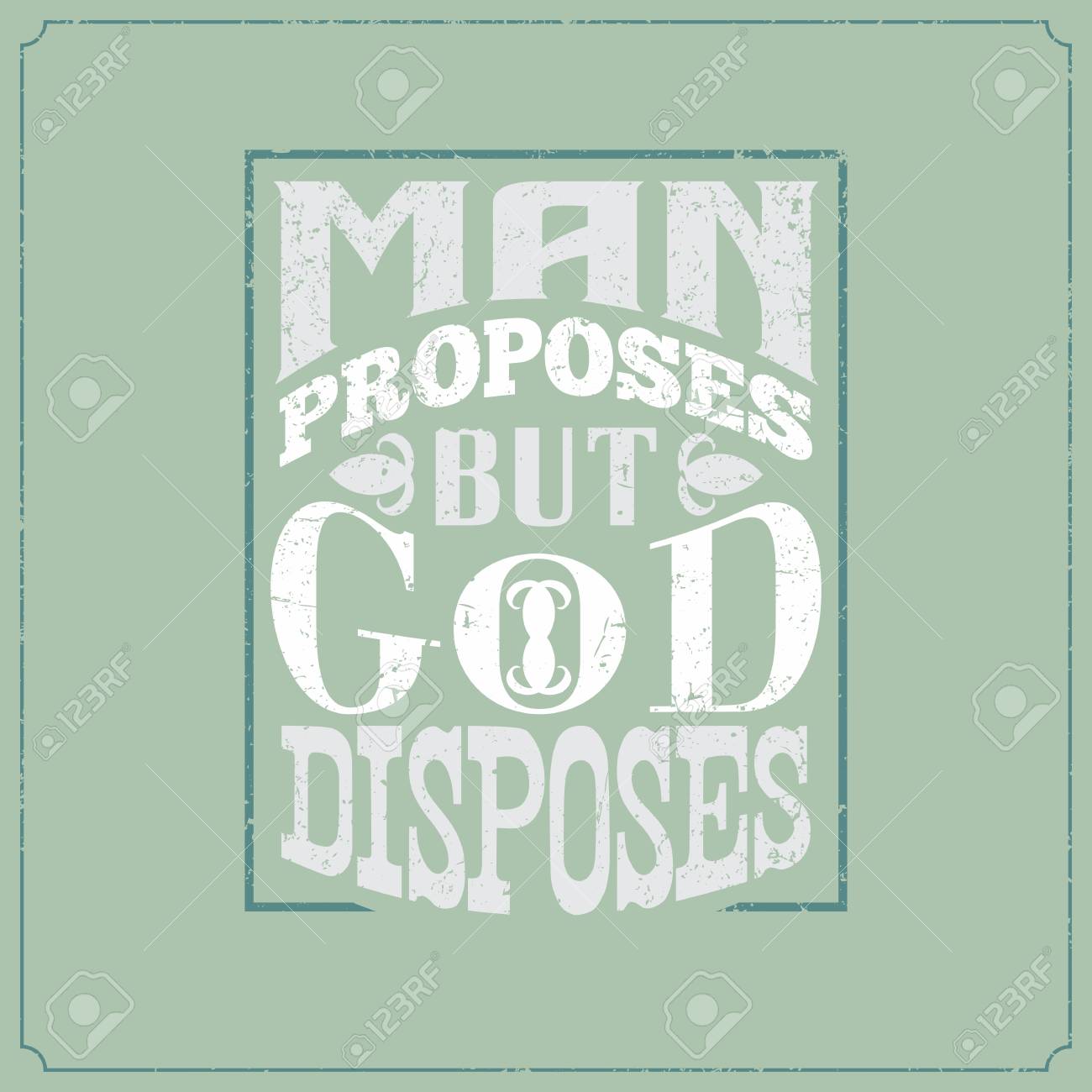 Man proposes but God disposes The quotation Man proposes but God disposes may come down to us as a direct translation from a work of devotion written in Latin by Thomas a Kempis. Man proposes but God disposes is not just a proverb but has full of meaning conveying that man cannot claim supremacy over God whatever comes out as a result of mans intelligent pursuit cannot be claimed as his own doing. For those who think God is outside of oneself it may be true for them. Man is the most superior animal of the world who has greater intelligence than the other. And it is better to be poor than dishonest. Man Proposes God Disposes 1864. 22 Kindness makes a man attractive. Man Proposes God Disposes. Then God has a recycling job to do.