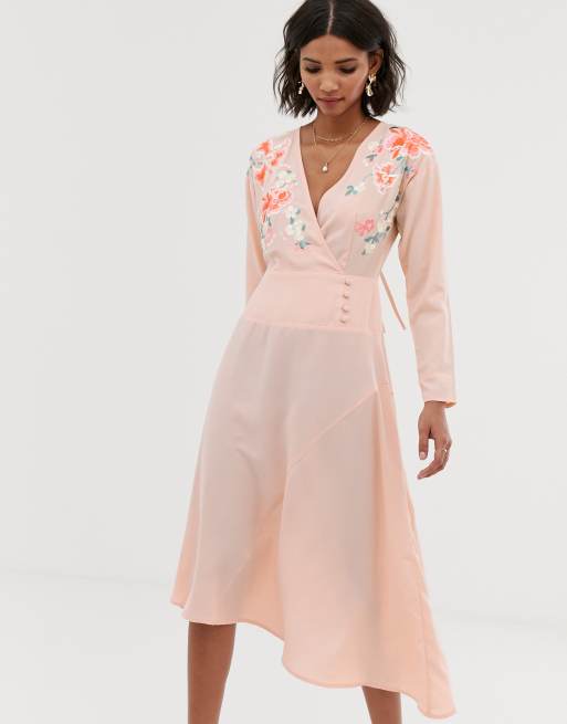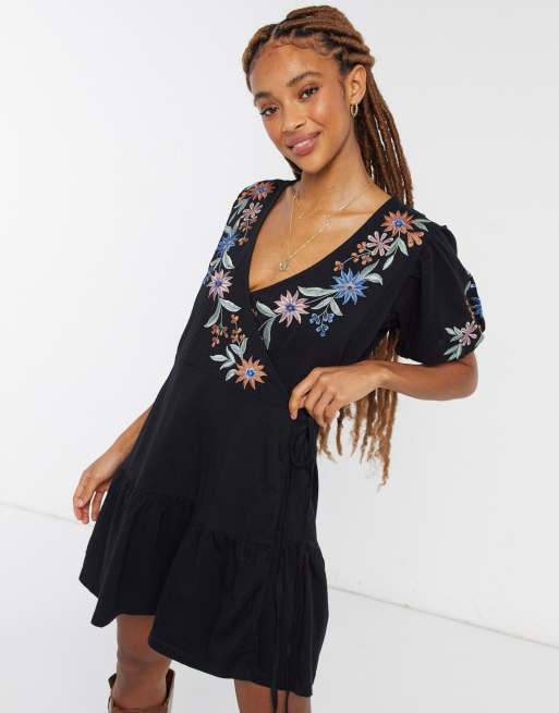 Embroidered Wrap Dress