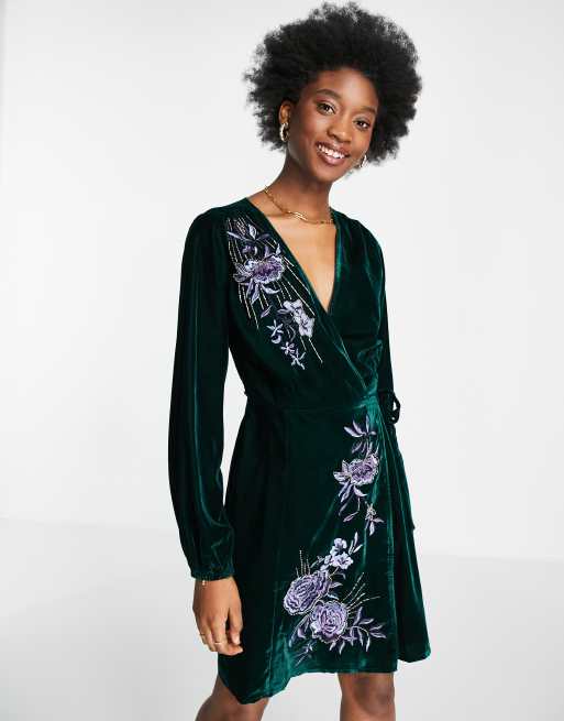 Verification process takes 24 hours. 5 out of 5 stars. Velvet Embroidered Wrap Dress in Midnight Blue.
