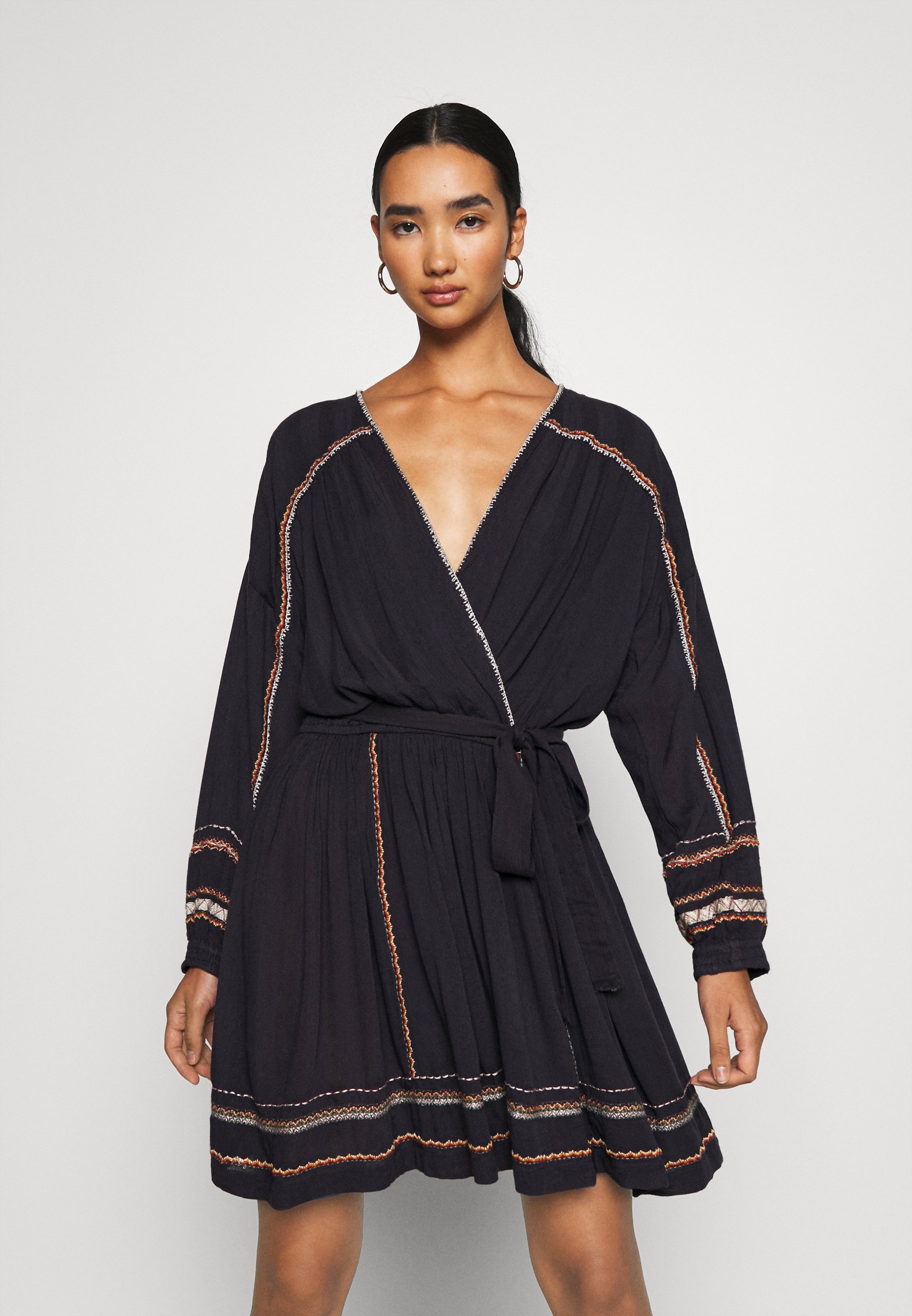 With a stylish V-shaped neckline and faux wrap design this dress is flattering on all body types. Click here to find out about the Embroidered Wrap Dress from Coast part of our latest CLOTHING collection ready to shop online today. The black gold wrap dress is customized with flouncy sleeves asymmetric flare featuring embroidered motifs all over.